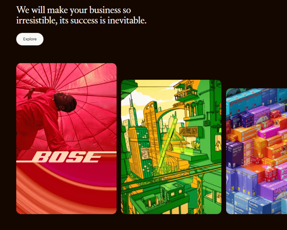 Spin is known for edgy, art-driven graphic design. Their work often blurs the line between commercial design and visual art, with strong expertise in posters, motion graphics, and web design.